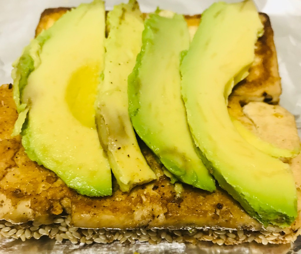 5) Add 2 slices of tofu to each piece of bread and you’re good to go! You can also add some avocado…ooooo, maybe chia seeds if you’re feeling crazy.